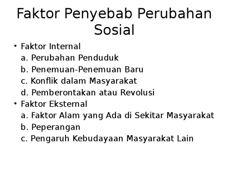 Faktor Internal Dan Eksternal Penyebab Perubahan Sosial Beserta …