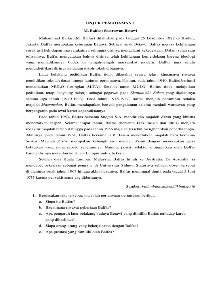 Contoh Soal Menentukan Pertanyaan Atas Isi Teks Biografi - PELAJARAN BAHASA INDONESIA DI JARI KAMU