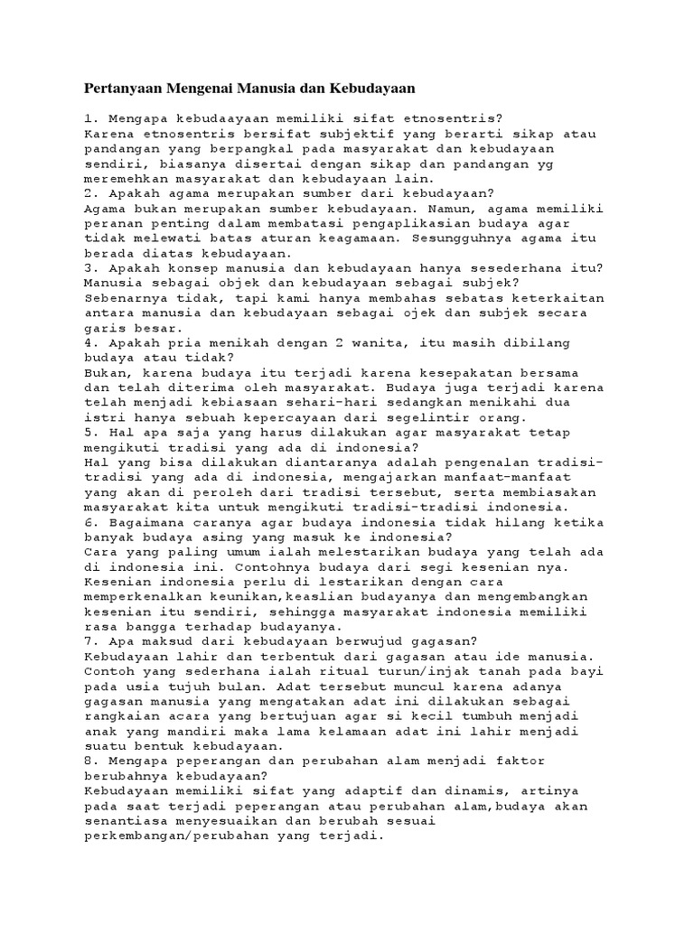 Pertanyaan Mengenai Manusia Dan Kebudayaan