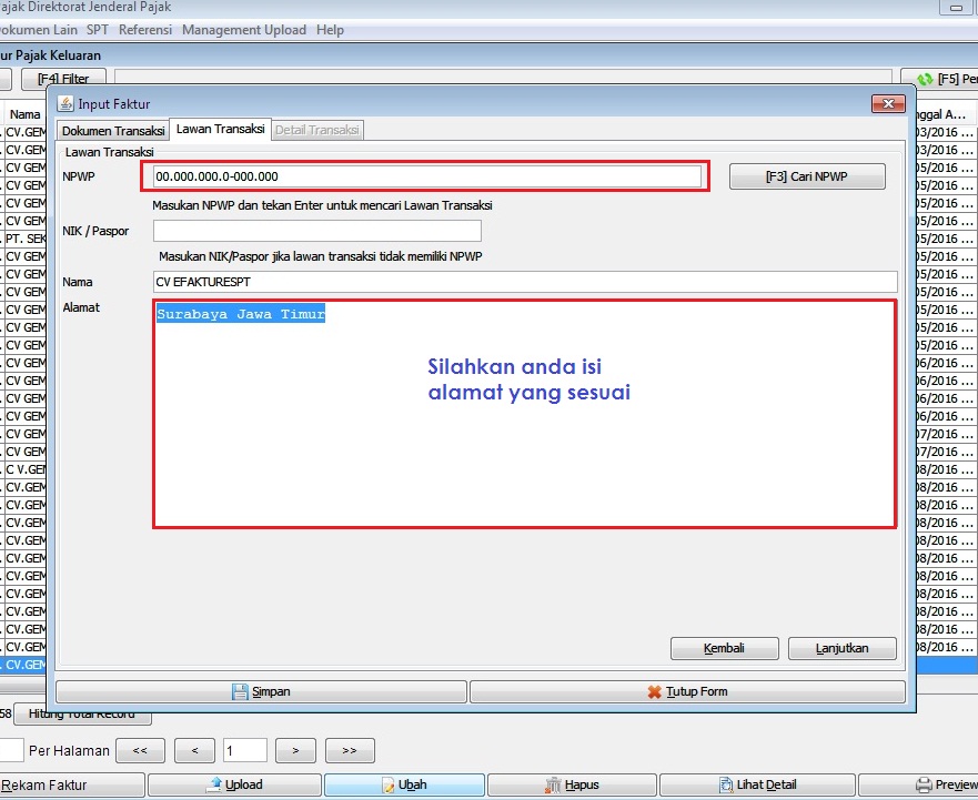 Cara Mengganti Alamat Lawan Transaksi di e-Faktur Versi 2.1 - eFaktur dan eSPT