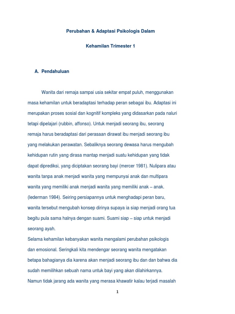 PERUBAHAN ADAPTASI PSIKOLOGI PADA IBU HAMIL TRIMESTER I - PDF Free …