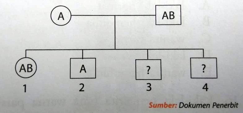 Perhatikan pedigree golongan darah berikut. Anak ke-3 dan ke-4 …
