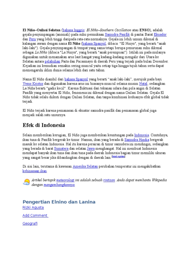 DOC) iklim di Indonesia, global warming, el nino, dan la nina | Wakhidatus Sholikhah - Academia.edu