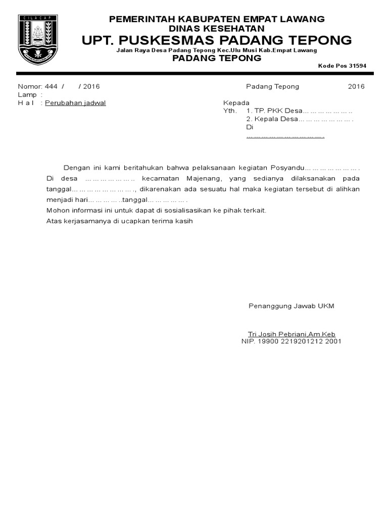 Contoh Surat Pemberitahuan Perubahan Jadwal Kegiatan - Kumpulan Surat Penting