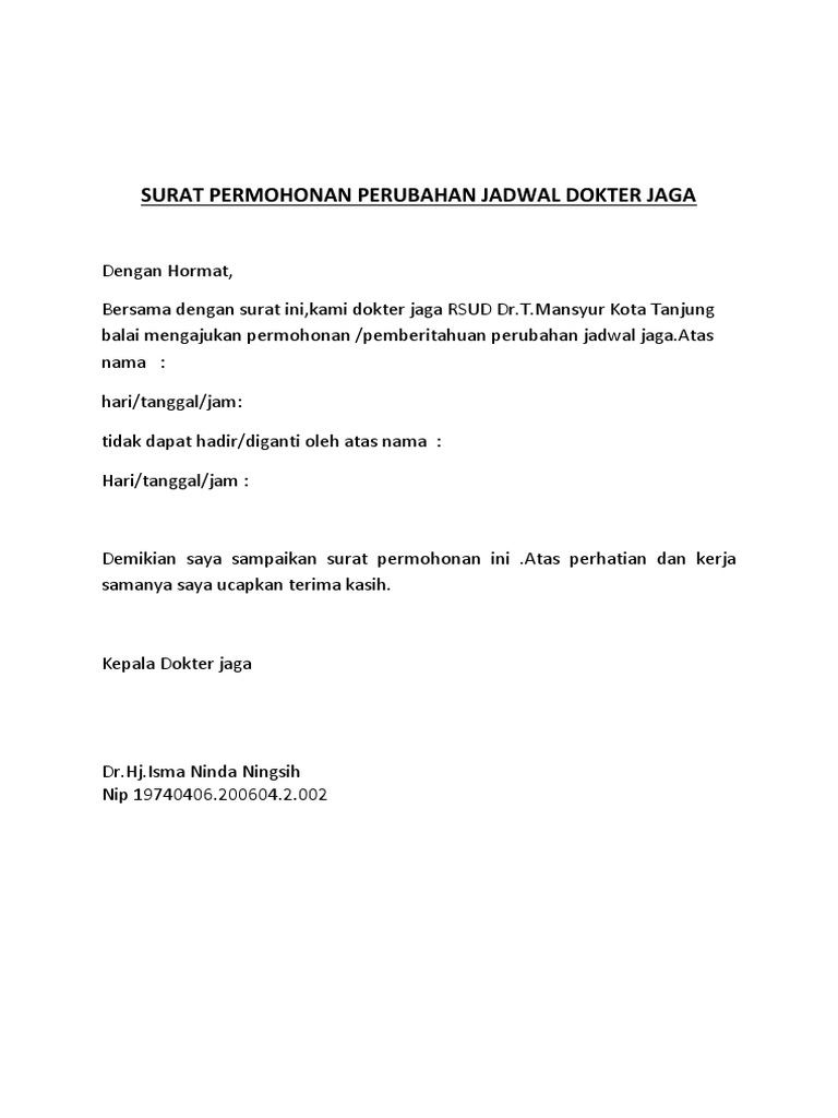 Surat Permohonan Perubahan Jadwal Dokter Jaga
