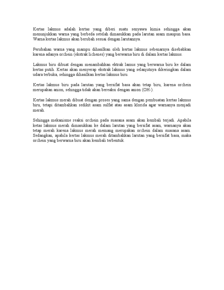 Kertas Lakmus Adalah Kertas Yang Diberi Suatu Senyawa Kimia Sehingga Akan Menunjukkan Warna Yang Berbeda Setelah Dimasukkan Pada Larutan Asam Maupun Basa