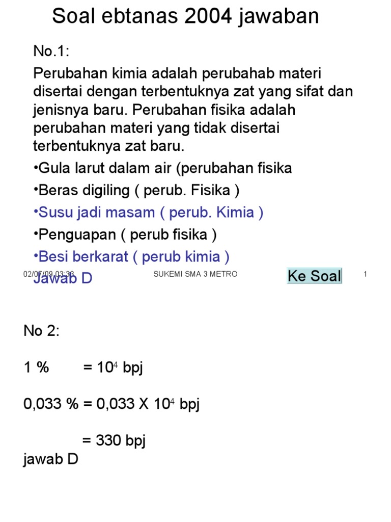 Jawaban Soal Ebtanas 2004