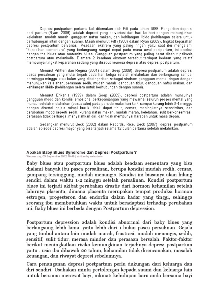 Depresi Postpartum, Rasa Sedih, Bersalah, dan Bentuk Umum Depresi …
