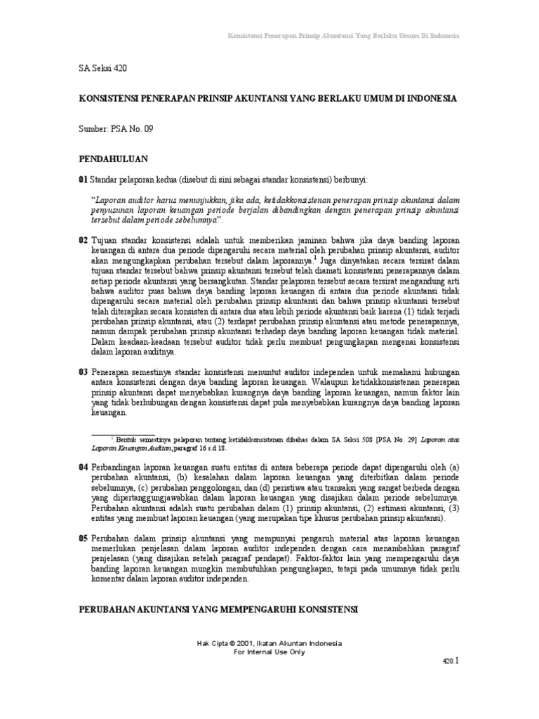 SA Seksi 420 KONSISTENSI PENERAPAN PRINSIP