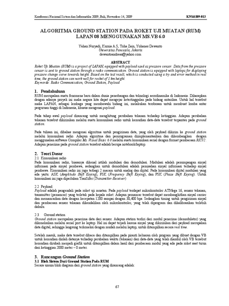 Algoritma Ground Station Pada Roket Uji Muatan Rum Lapan 08 Menggunakan Ms Vb 6 0