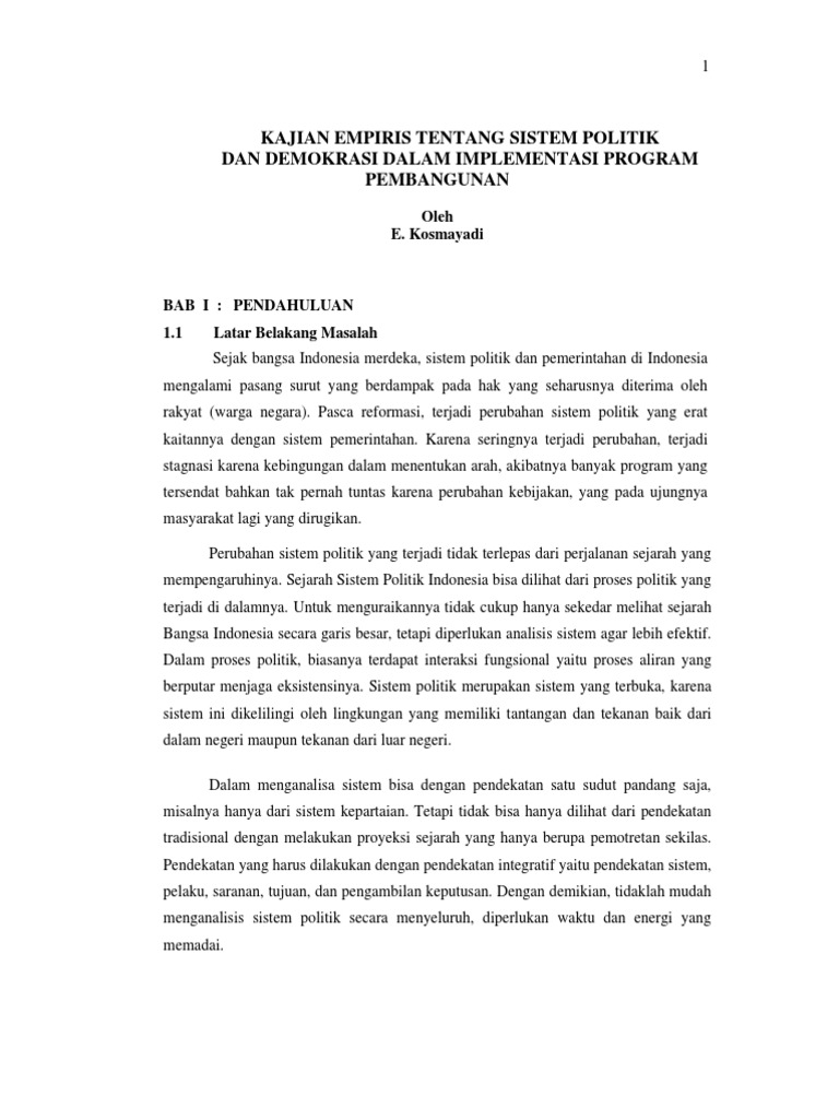 Kajian Empiris Tentang Sistem Politik Dan Dermokrasi Dalam Implementasi Program Pembangunan