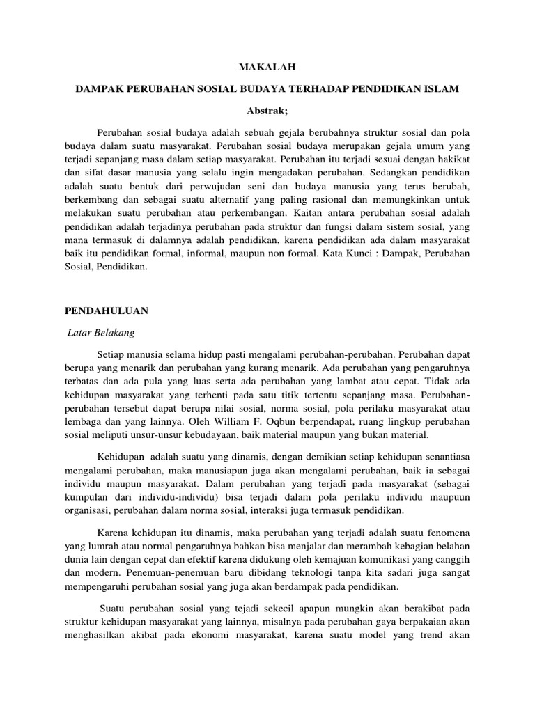DAMPAK PERUBAHAN SOSIAL BUDAYA TERHADAP PENDIDIKAN