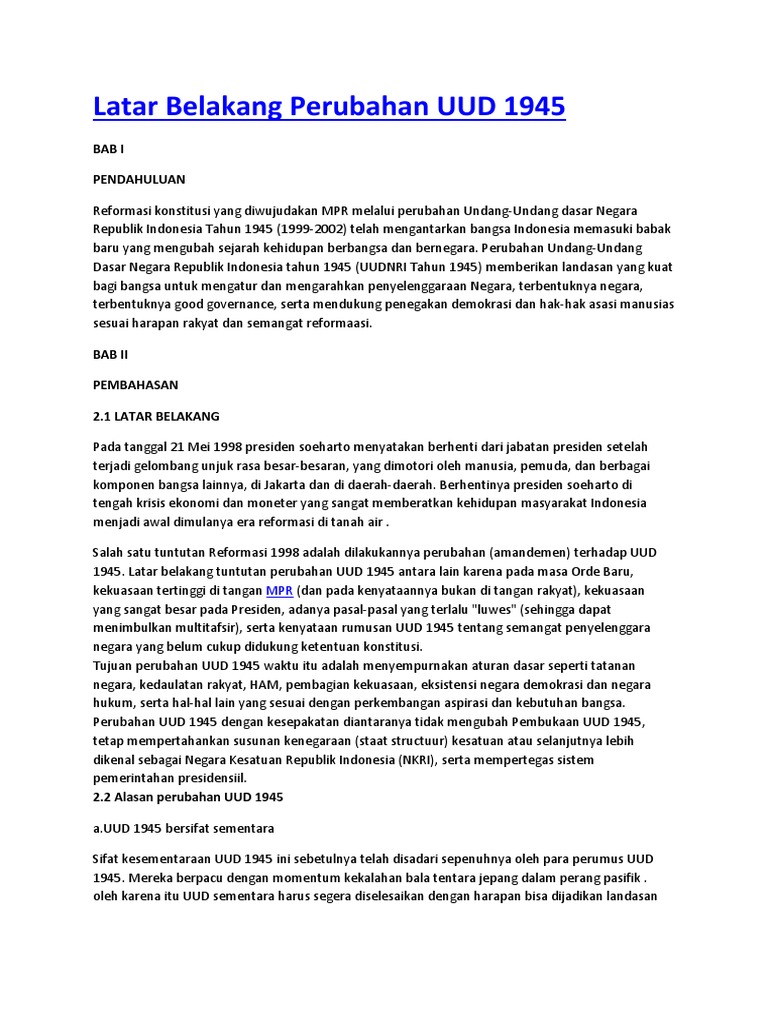 DOC) Latar Belakang Perubahan UUD 1945 | Abizar Giffari - Academia.edu