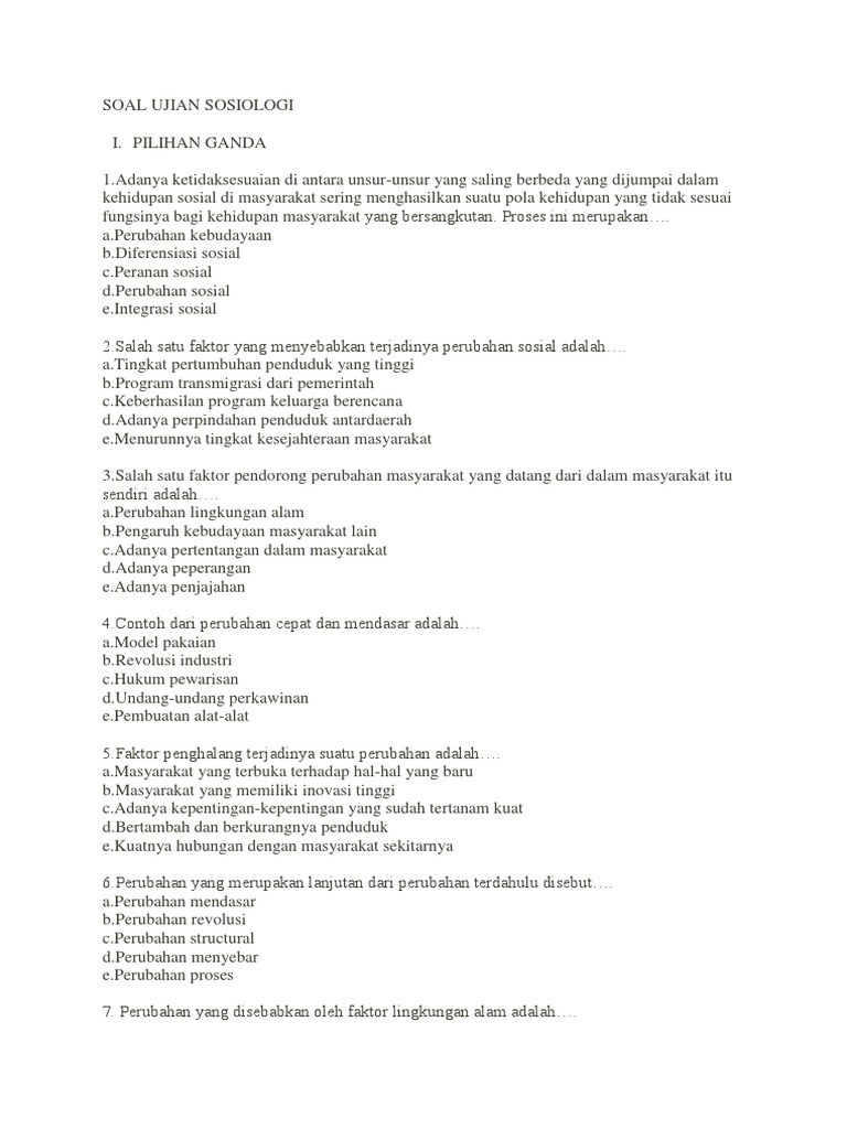 Soal Dan Jawaban Perubahan Sosial Beserta Dampaknya
