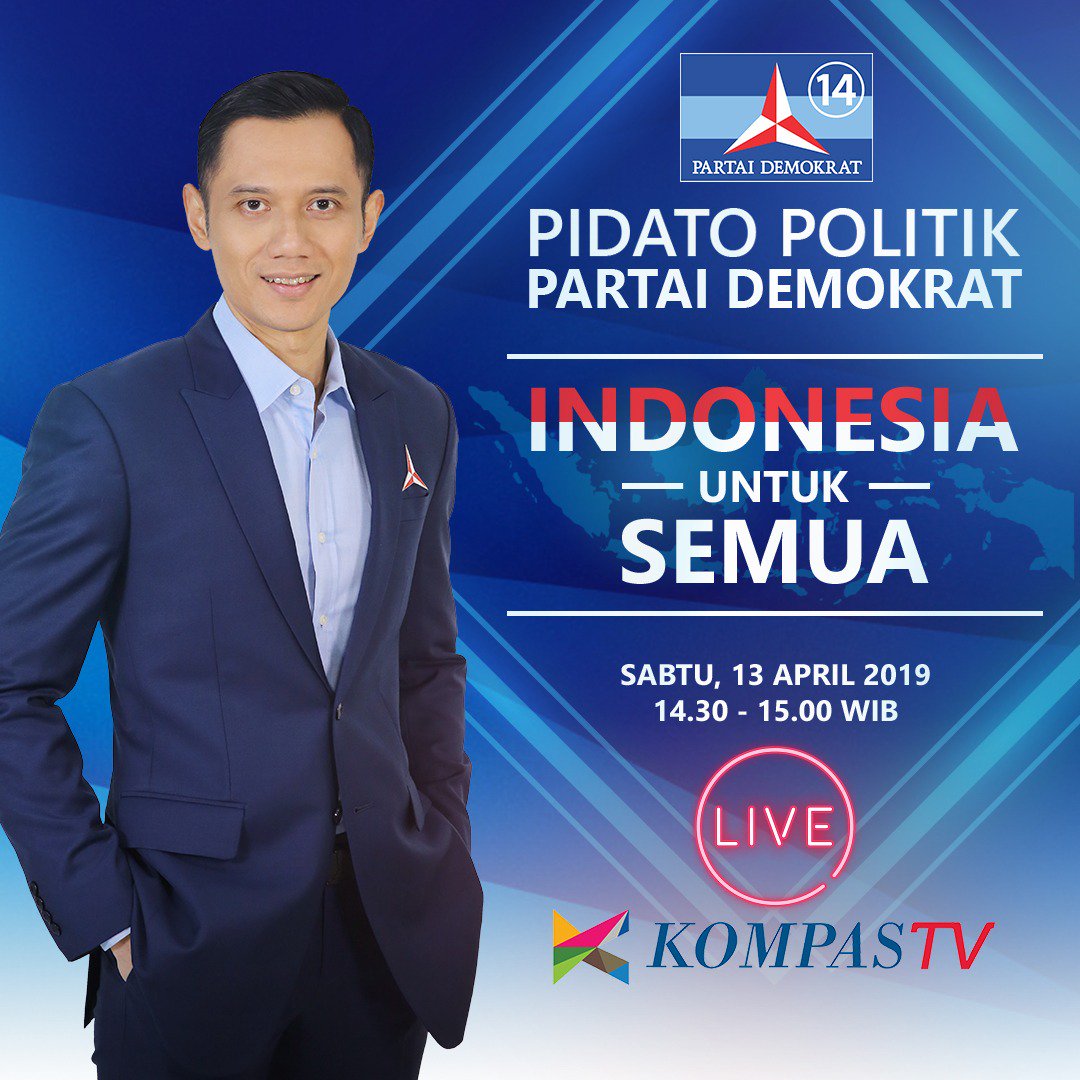 Partai Demokrat on Twitter: “Saksikan Pidato Politik Partai Demokrat Indonesia untuk Semua Sabtu 13 April 2019 live di KompasTv… "