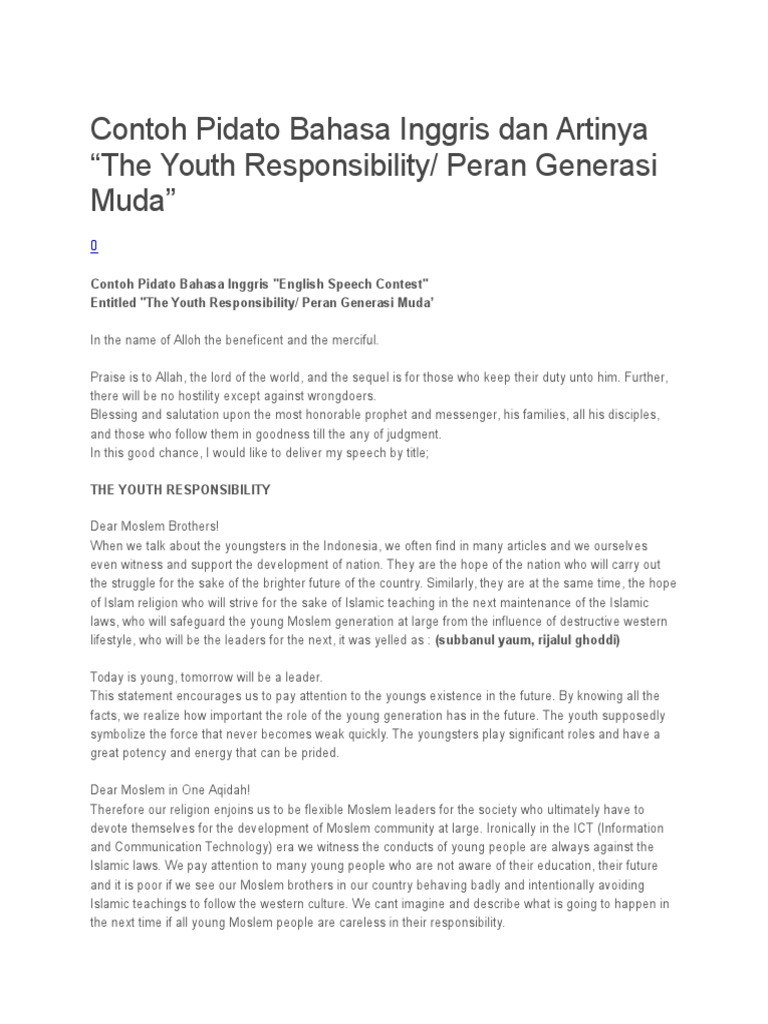 Contoh Pidato Bahasa Inggris Singkat Tentang Islam | Contoh Soal …