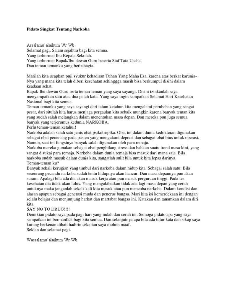 DOC) Pidato Bahasa Indonesia Pemuda Hebat Anti Narkoba | Revika N Fadillah - Academia.edu