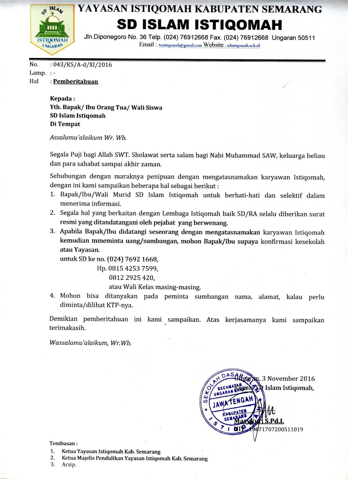 Informasi untuk Orangtua Murid SD Istiqomah - SD ISLAM ISTIQOMAH