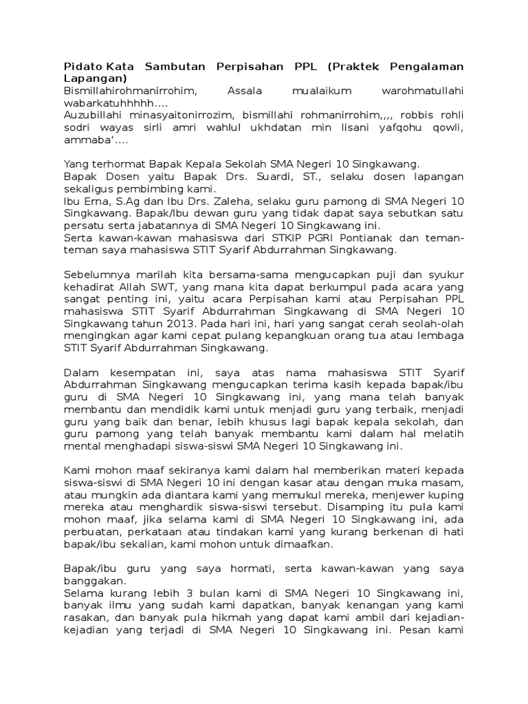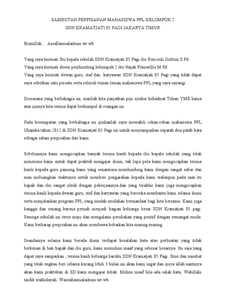 Contoh Kata Sambutan Untuk Perpisahan Ppl | Ilmu Pengetahuan Populer 3