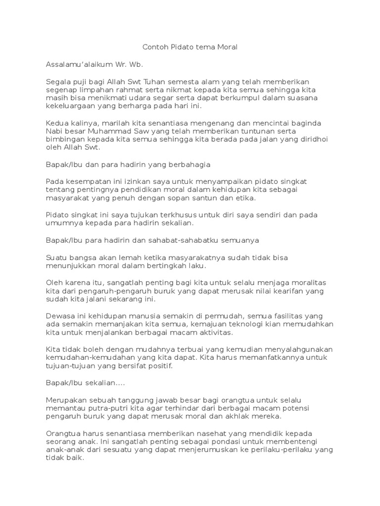 DOC) Naskah Teks Pidato Pentingnya Pendidikan Moral | CBC Syarif …