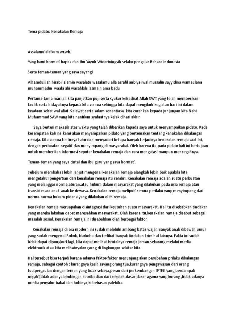 Contoh Pidato Kenakalan Remaja - Beberapa Teks Pidato Tema Diatas