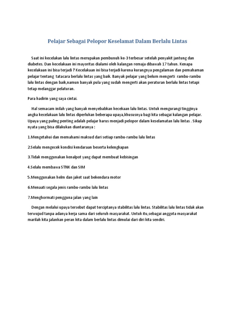 DOC) Makalah bahan lomba pelajar pelopor keselamatan berlalu lintas | melly ai - Academia.edu