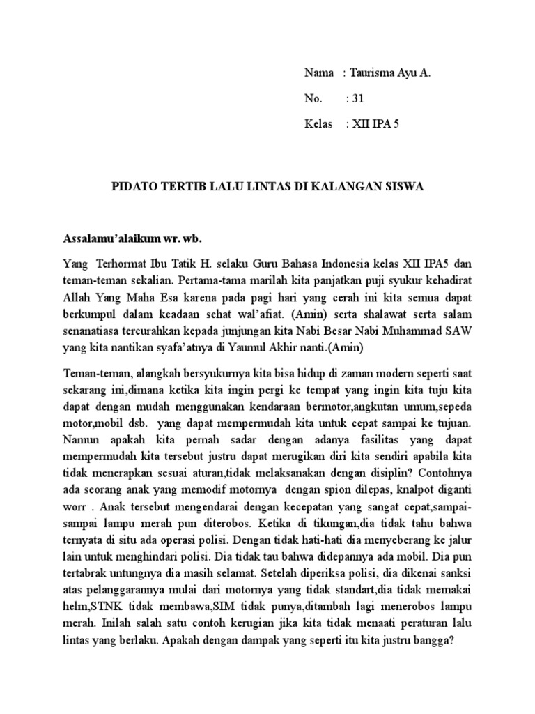 Pidato Tertib Berlalu Lintas