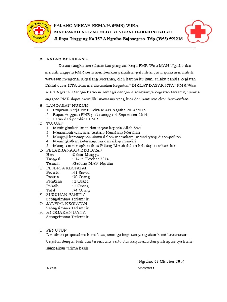 contoh proposal diklat pmr wira