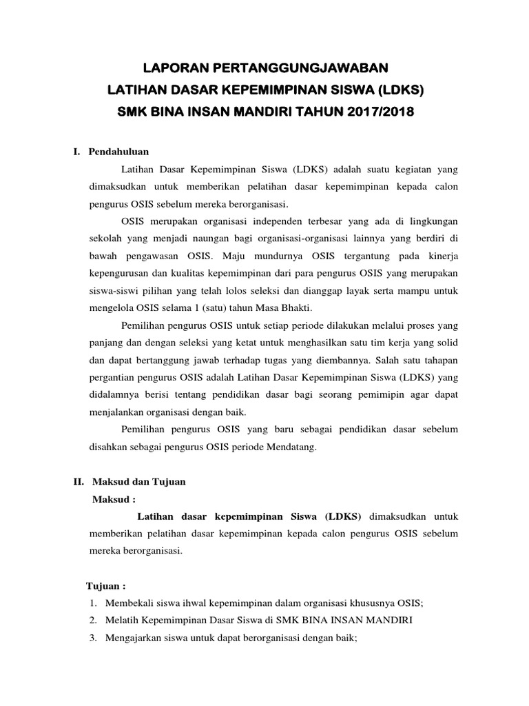 DOC) PROPOSAL LATIHAN DASAR KEPEMIMPINAN SISWA (LDKS) OSIS SMP EL FITRA BANDUNGTAHUN PELAJARAN 2014 / 2015 Penyampaian Materi tentang : @BULLET Keorganisasian @BULLET AD / ART OSIS | Rahmat Hidayat - Academia.edu