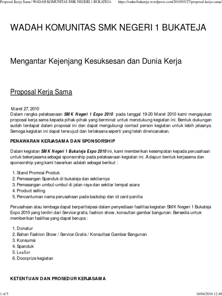 Proposal Kerja Sama _ Wadah Komunitas Smk Negeri 1 Bukateja