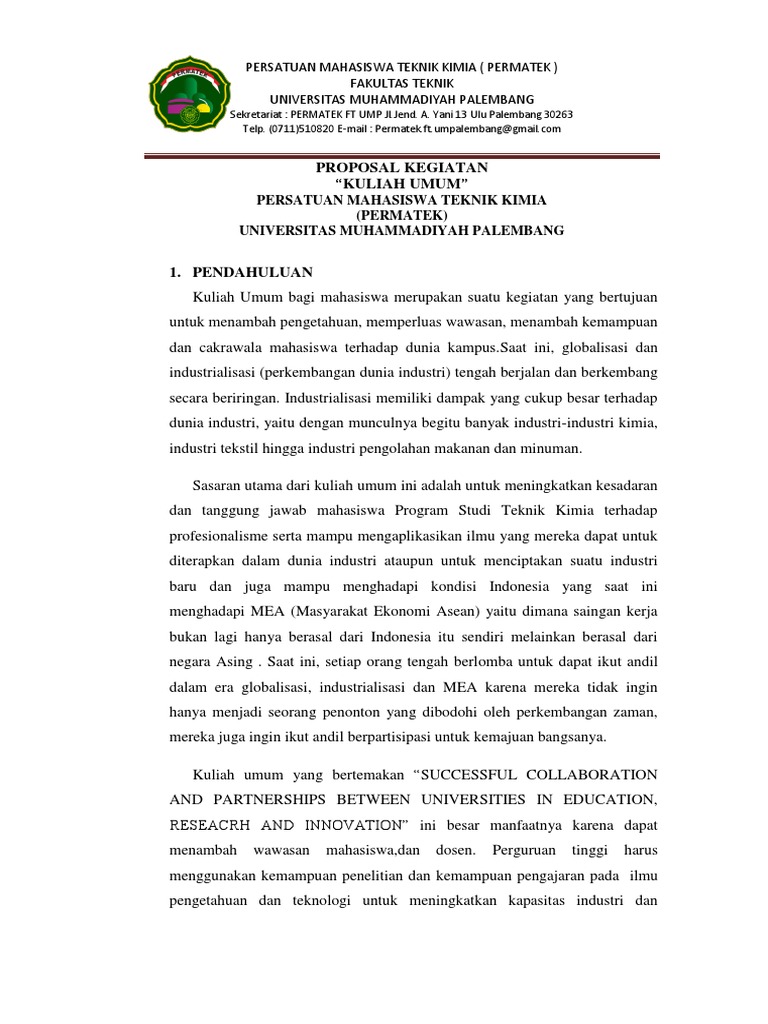 Koleksi Proposal: Contoh Proposal Kuliah Umum Mahasiswa Fakultas Ekonomi Manajemen Unsyiah
