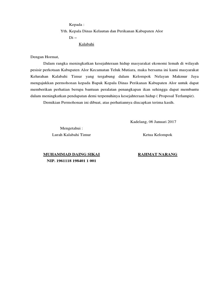 DOC) proposal permintaan bantuan alat nelayan | Gizan Hila - Academia.edu