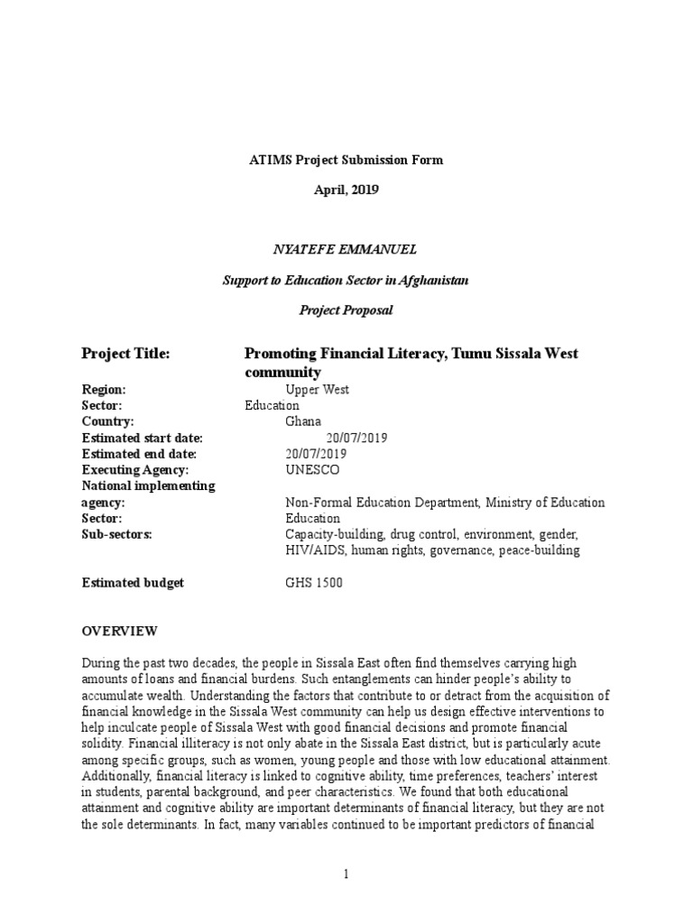 Project Title: Promoting Financial Literacy, Tumu Sissala West community | Literacy | Financial Literacy