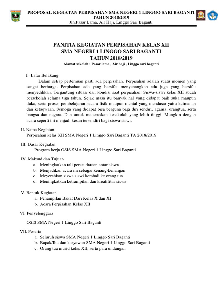 Pdf) Contoh Proposal Kegiatan Perpisahan Sekolah - Seputar Proposal
