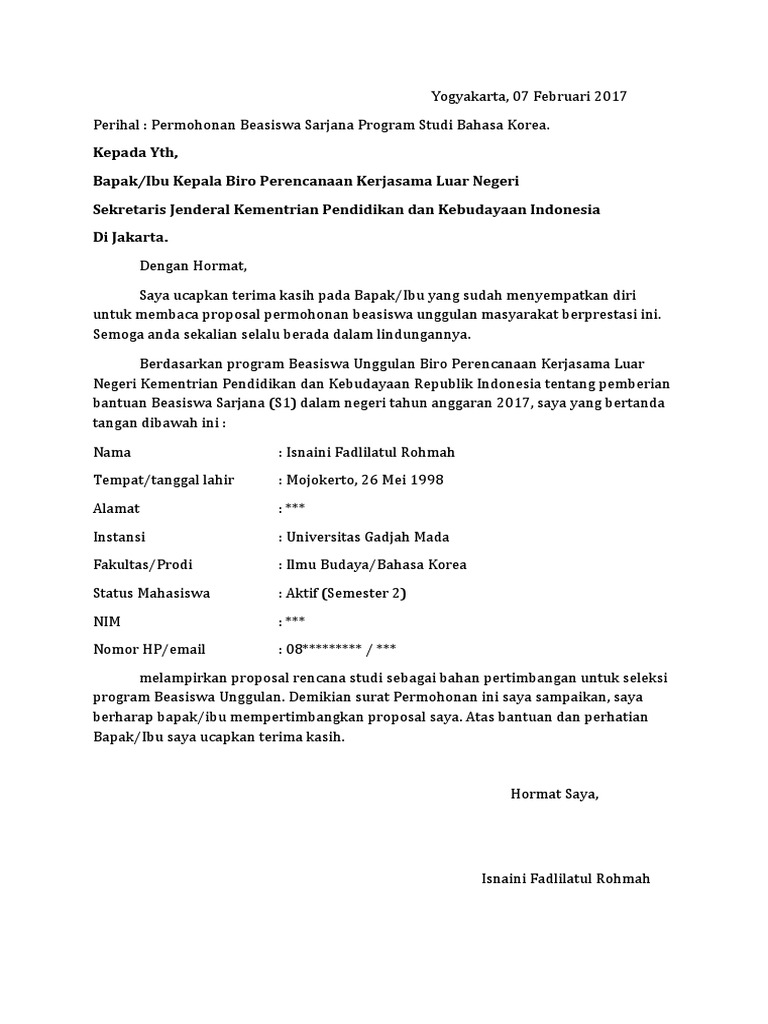 Contoh Proposal Rencana Studi Beasiswa Unggulan S1 Pdf - Berbagi Contoh Proposal