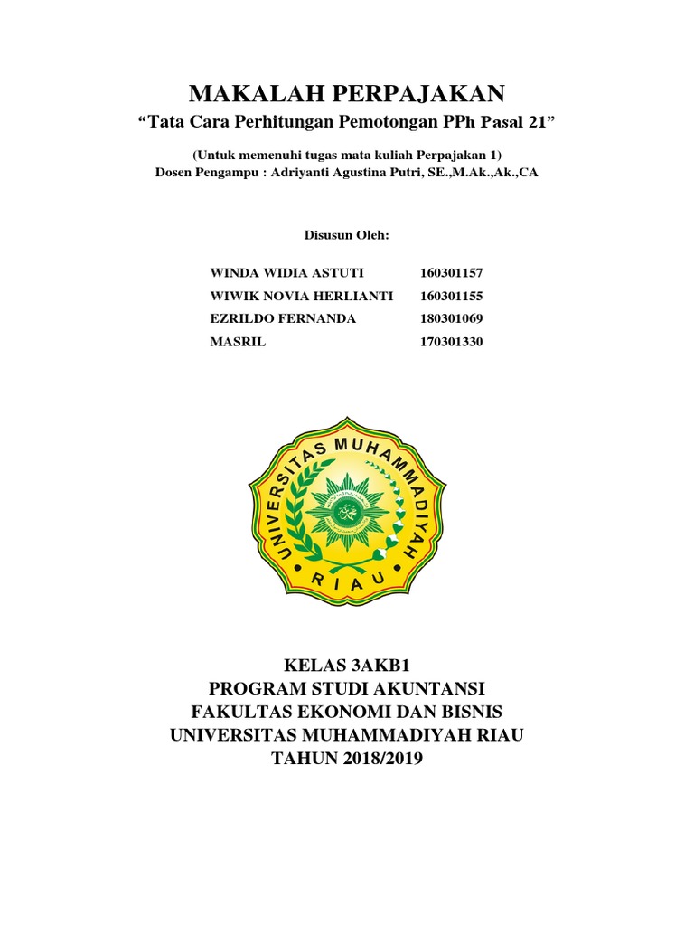 DOC) MAKALAH PAJAK PPH PASAL 21 | Mita Fahriyah - Academia.edu