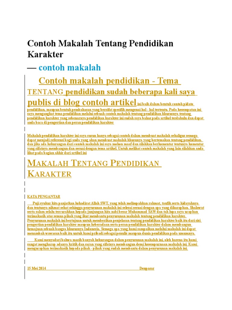 Contoh Makalah Pendidikan Moral dan Karakter DOC | PDF …