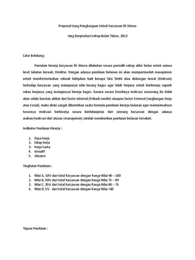 Proposal Uang Penghargaan Untuk Karyawan RS Mesra.doc