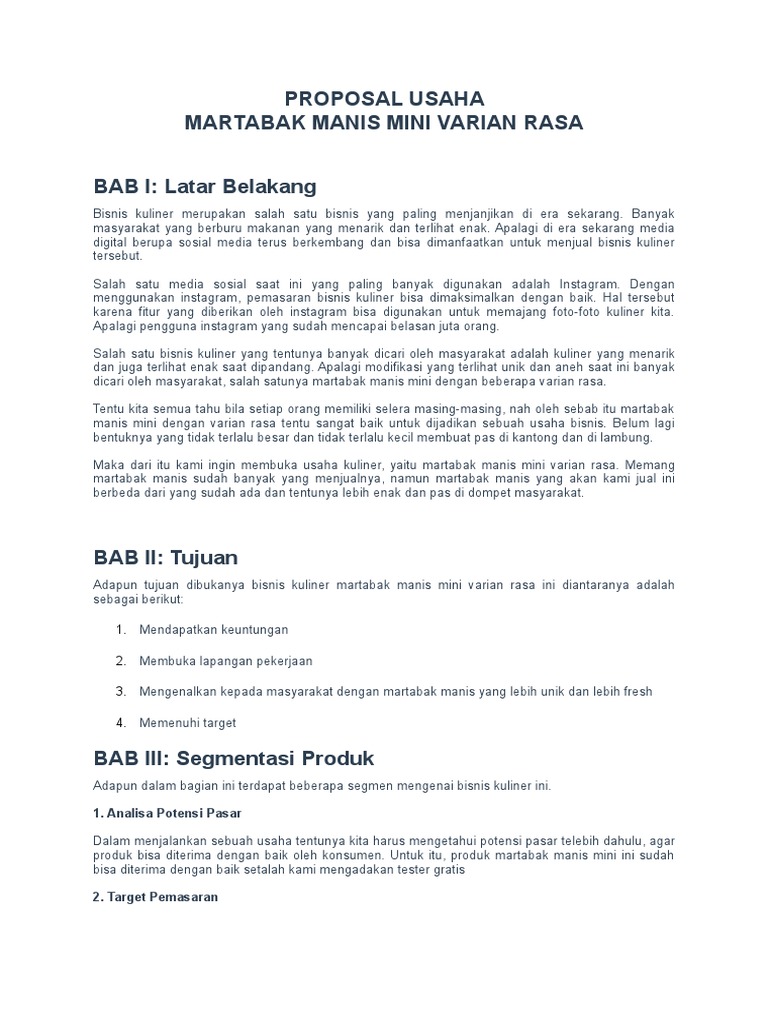 DOC) CONTOH PROPOSAL USAHA MARTABAK MANIS MINI VARIAN RASA | Onlinerz Man - Academia.edu