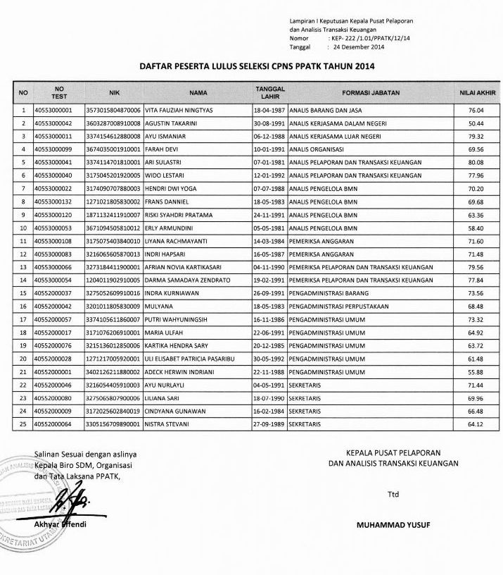 Pengumuman Kelulusan CPNS PPATK - CPNS Bersih