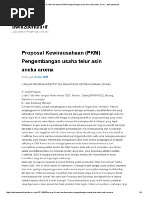 Proposal Kewirausahaan (PKM) Pengembangan Usaha Telur Asin Aneka Aroma _ Awikzaenalarif