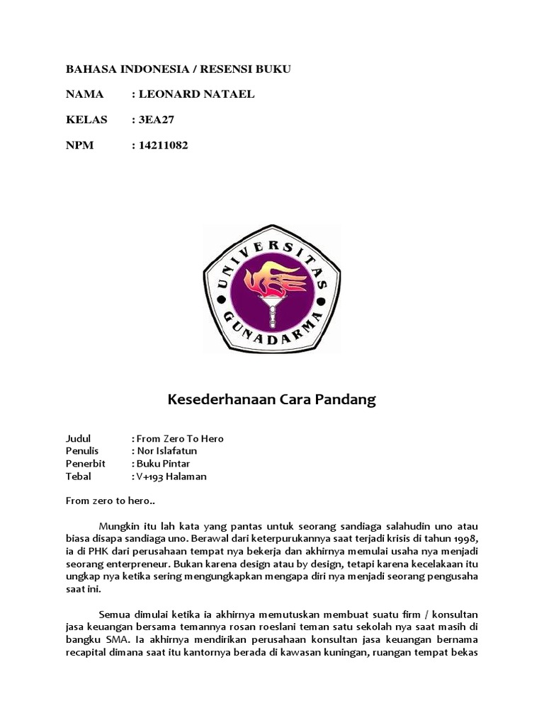 Sering Sering Tugas: Bahasa Indonesia : Contoh Resensi Buku Non-Fiksi
