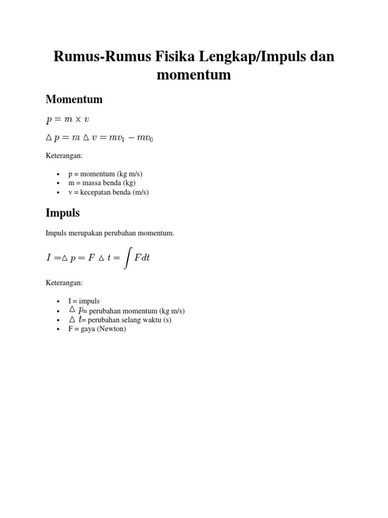 Rumus-Rumus Fisika Lengkap/Impuls dan momentum