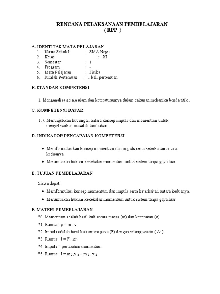 PDF) Bahan Ajar Fisika - Momentum, Impuls, dan Tumbukan | I Gede Dana Santika - Academia.edu