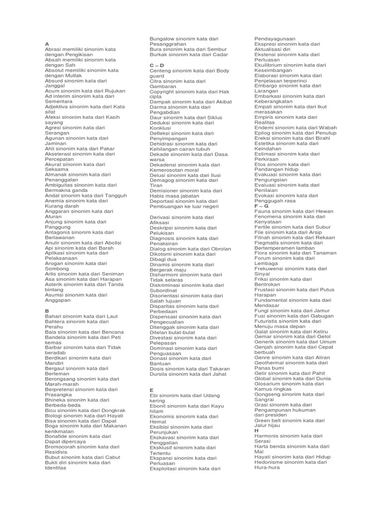 BANK SINONIM.pdf - BANK SINONIM[SINONIM SINONIM Abrasi = Pengikisan Absah = Sah Absolut = Mutlak Absurd = Janggal Acum = Rujukan Ad interim = Sementara | Course Hero