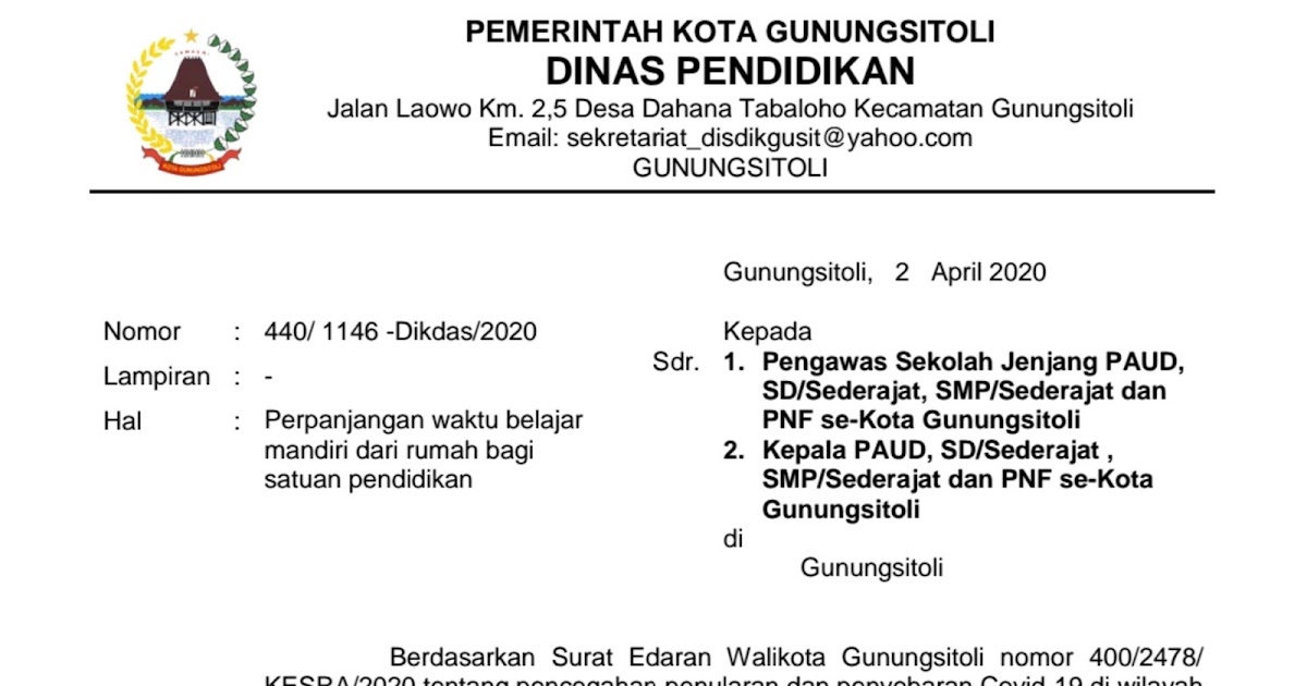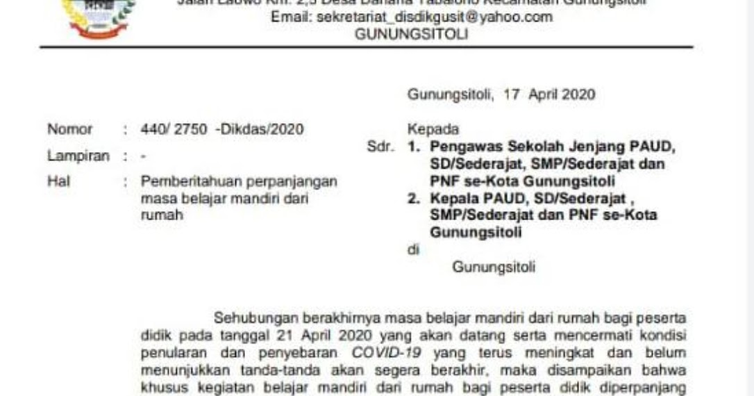 Masa Belajar Mandiri Untuk Anak Sekolah Diperpanjang Karena Wabah Corona - Warta Nias