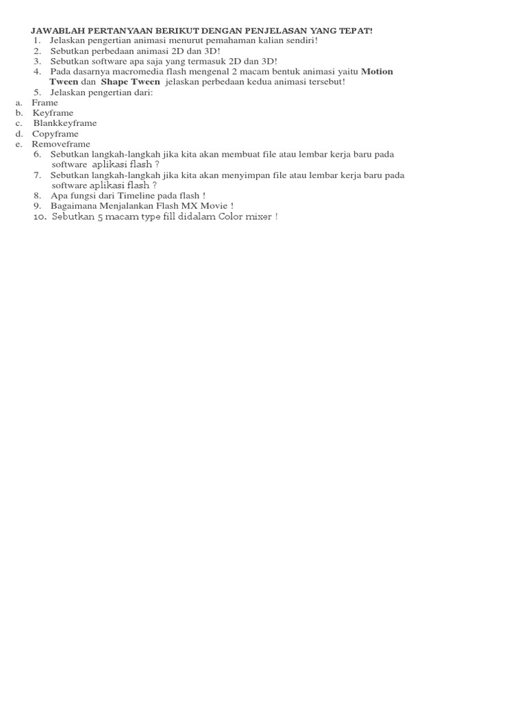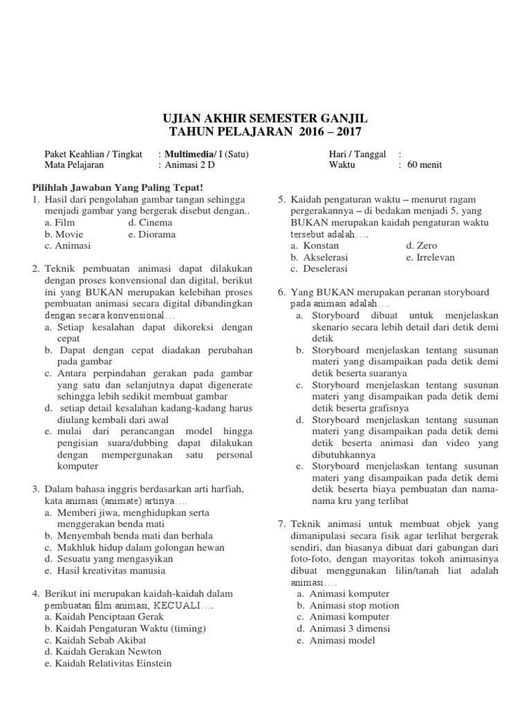 Contoh Soal Animasi 2d Dan Jawabannya – Peranti Guru