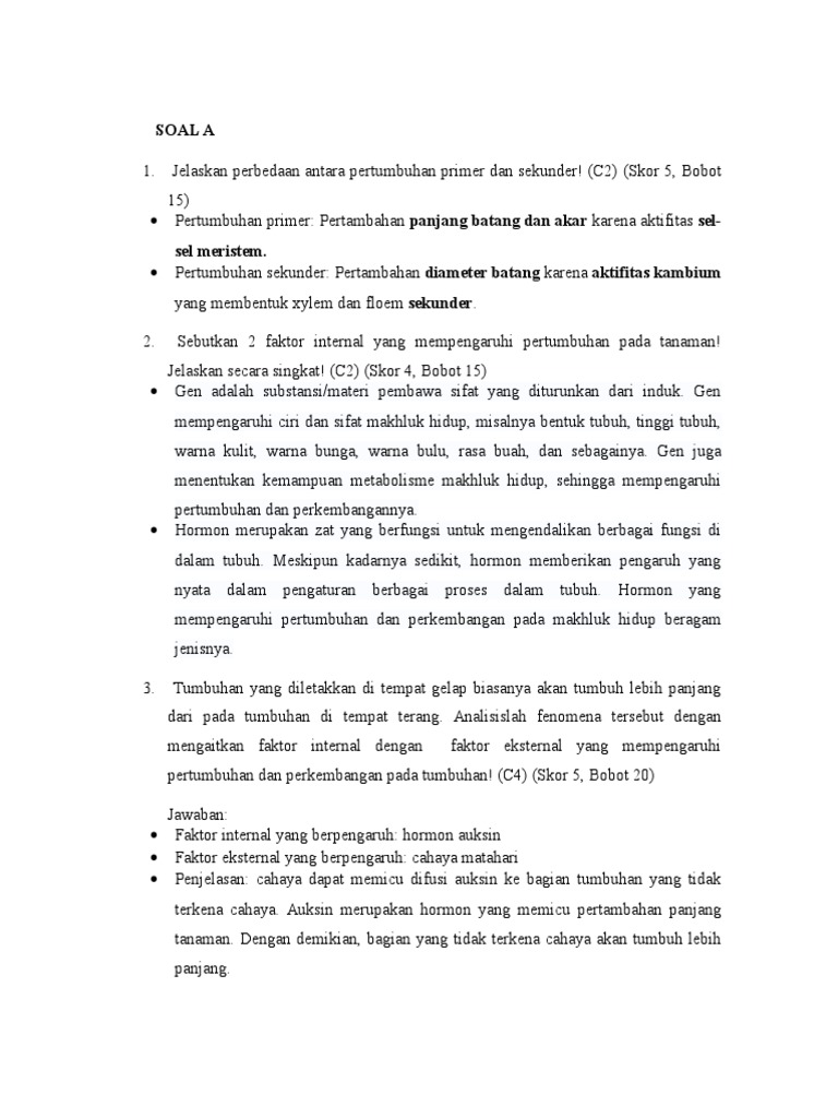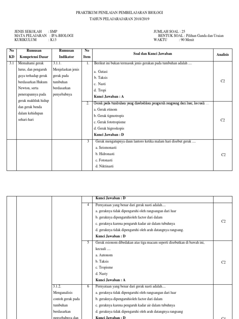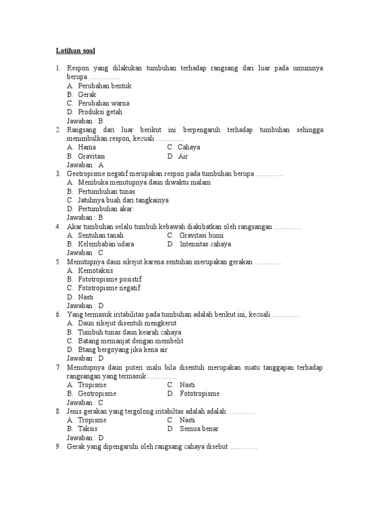 DOC) Soal Sistem Gerak Pada Tumbuhan part 1 | Nur Hanifah …