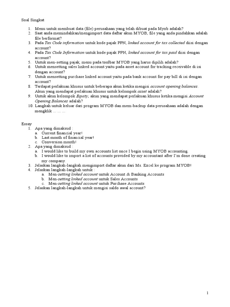 DOC) Soal aplikasi komputer myob accurate kelas xi smk | Heri …