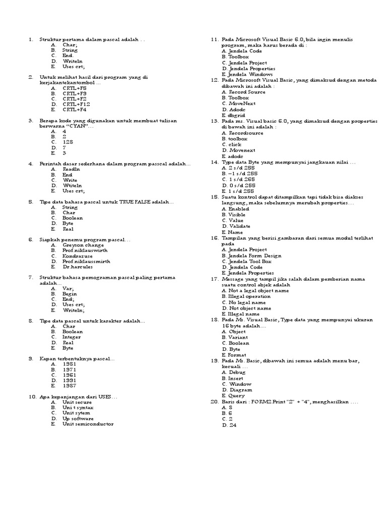 Latihan Soal Pemrograman Pascal Pilihan Ganda